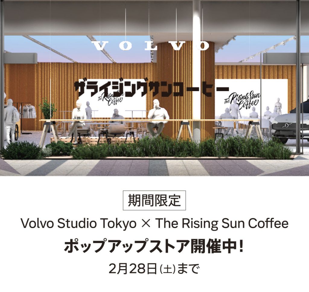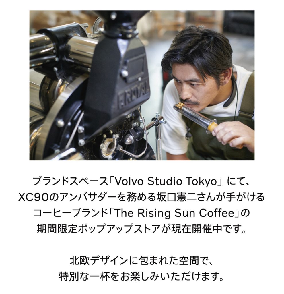 ただいま南青山にあります「Volvo Studio Tokyo」に、坂口憲二さん率いる「The Rising Sun Coffee」が期間限定でオープンしております!