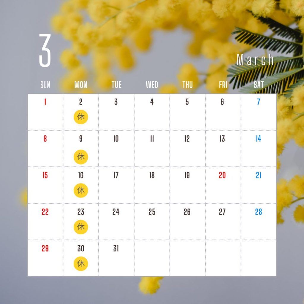 本日は3月の営業日についてのご案内です。
